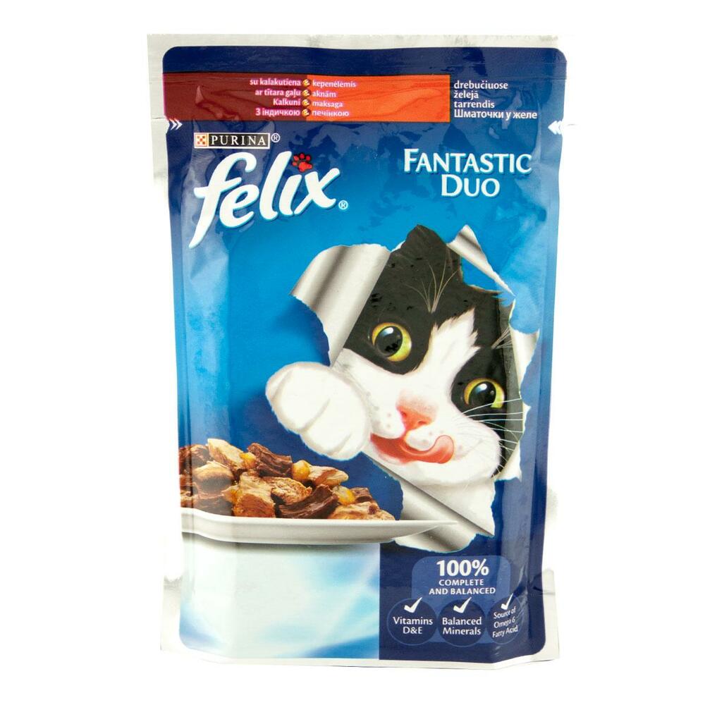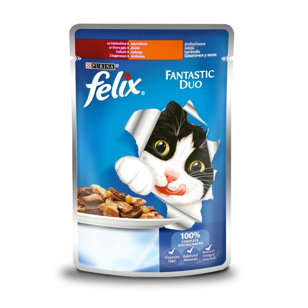 Felix Fantastic Duo Консервы для кошек Кусочки в желе с индейкой и печенью 85 г Purina