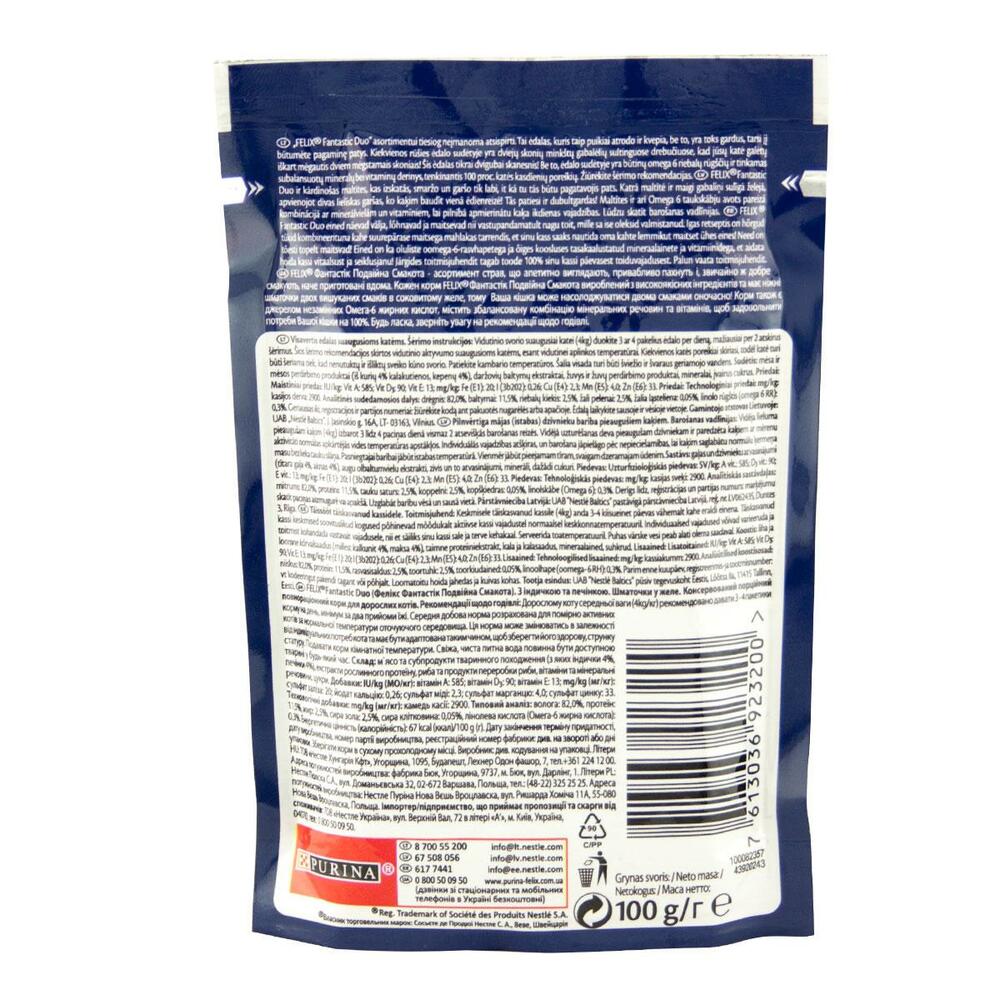 923200 - Felix Fantastic Duo (пауч) Консерви для кішок Шматочки в желе з індичкою і печінкою (100 гр)