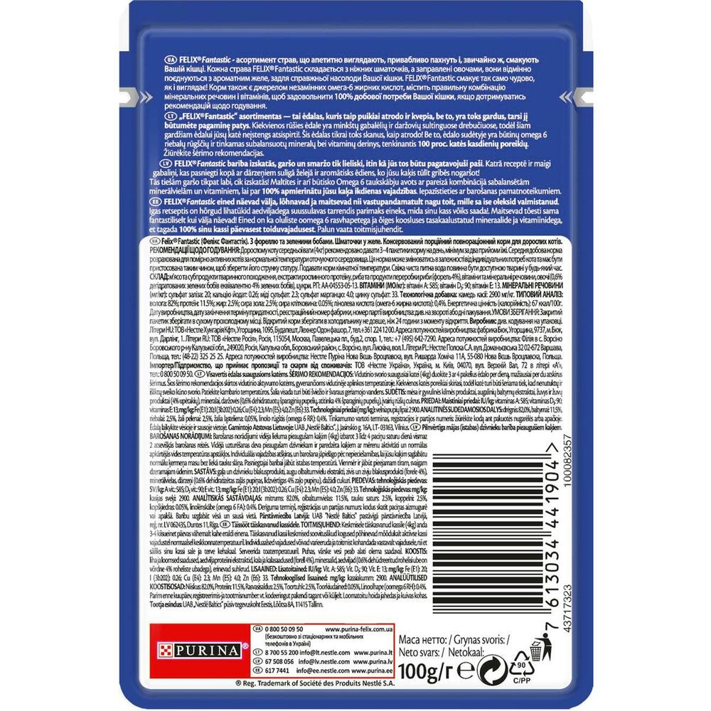 Вологий корм Фелікс Felix Fantastic консерви для кішок з фореллю і зеленими бобами в желе 85 г, Purina