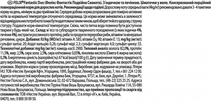 Felix Fantastic Консерви для кішок з індичкою та печінкою в желе 85 г Purina