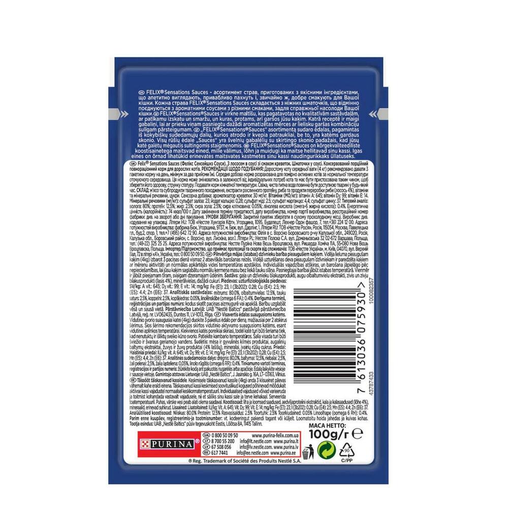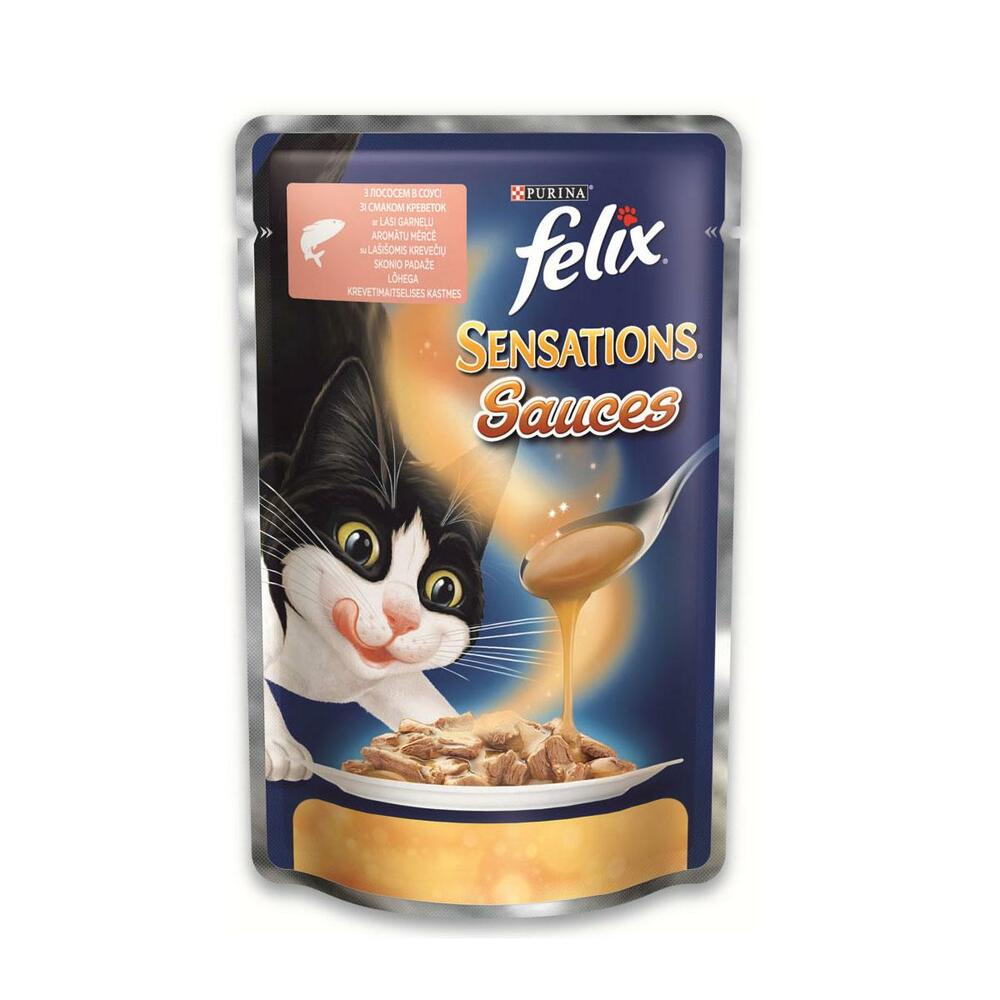 Felix Sensation Sauces Консерви для кішок з лососем в соусі Повнораціонний консервований корм для дорослих кішок, шматочки в соусі з лососем. Склад: