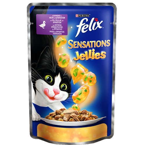 Кожен корм FELIX Sensations Jellies складається з ніжних шматочків, що відмінно поєднуються з ароматним желе з різними смаками, задля насолоди Вашої кішки. Корми також є джерелом незамінних омега-6 жирних кислот, містять правильну комбінацію збалансованих мінеральних речовин та вітамінів, щоб допомогти підтримувати Вашу кішку сповненою життєвих сил та готовою до пустощів! Сповнений корисними поживними властивостями корм задовольнить 100% добової потреби Вашої кішки, якщо дотримуватись рекомендацій щодо годування. Це ще не все! FELIX Sensations Jellies доступний в широкому асортименті комбінацій з ароматним желе, щоб кожен день задовольняти любов Вашої кішки до різноманітних страв.