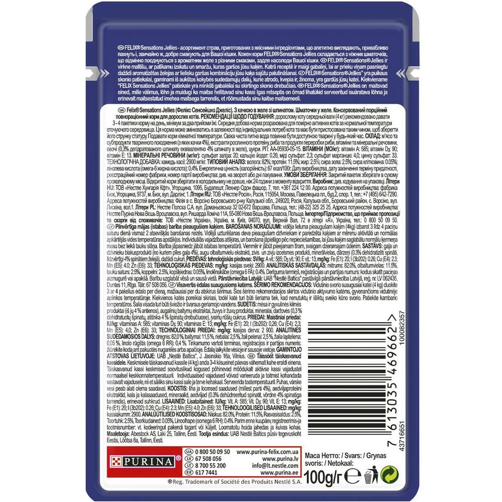 Вологий корм Фелікс Felix Sensations Jellies для котів шматочки з качкою і шпинатом в желе 85 г, Purina