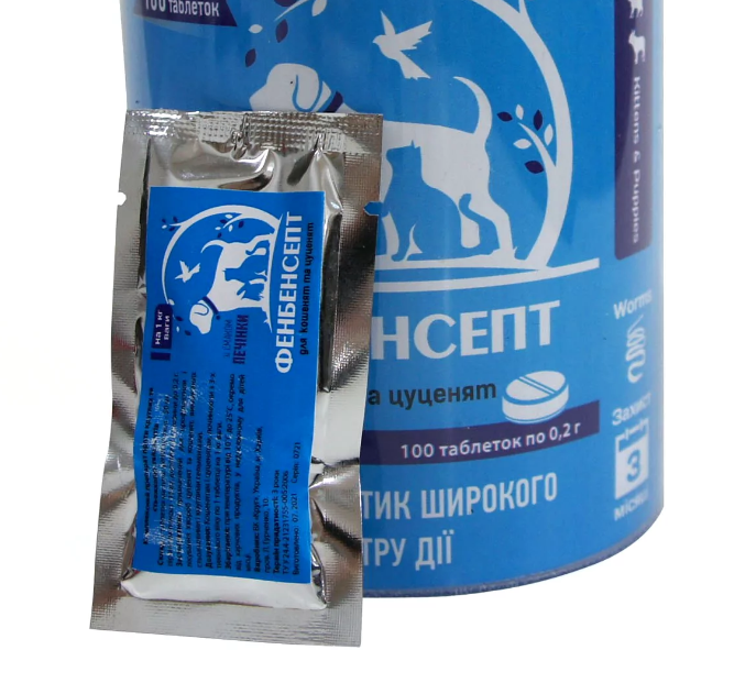 "ФЕНБЕНСЕПТ" - комплексний антигельмінтний препарат для кошенят і цуценят, на 1 кг №100 (Круг)