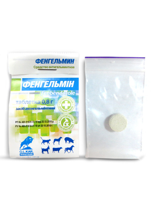 Одна таблетка (0,8 г препарату) містить діючу речовину: фенбендазол – 50 мг.