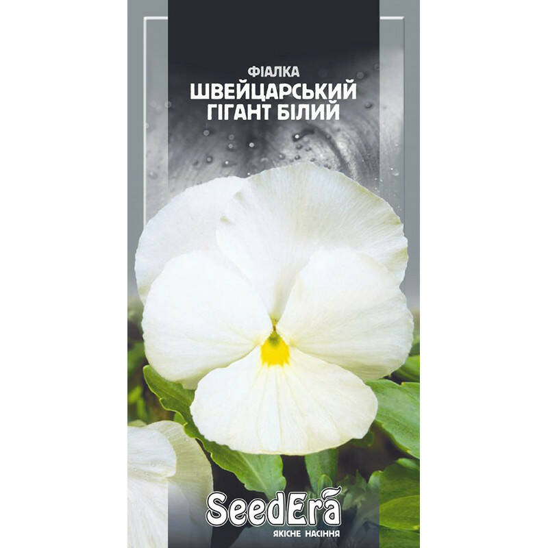 Фіалка Швейцарський гігант білий - це дворічна зимостойка рослина, висотою 10–15 см з великими квітами (5–10 см в діаметрі). Світлолюбна, вологолюбна, холодо– та зимостійка. В суворі зими потребує укриття. При вирощуванні, як однорічної культури, насіння на розсаду висівають в лютому–березні; як дворічної – в червні–липні. Гарно переносить пересадку, навіть у квітучому стані. При культивуванні, як дворічної культури, зацвітає на другий рік. Ідеальна рослина для посадки в балконних ящиках, на альпійських гірках, для килимових квітників, оформлення бордюрів та вирощування у вазонах.