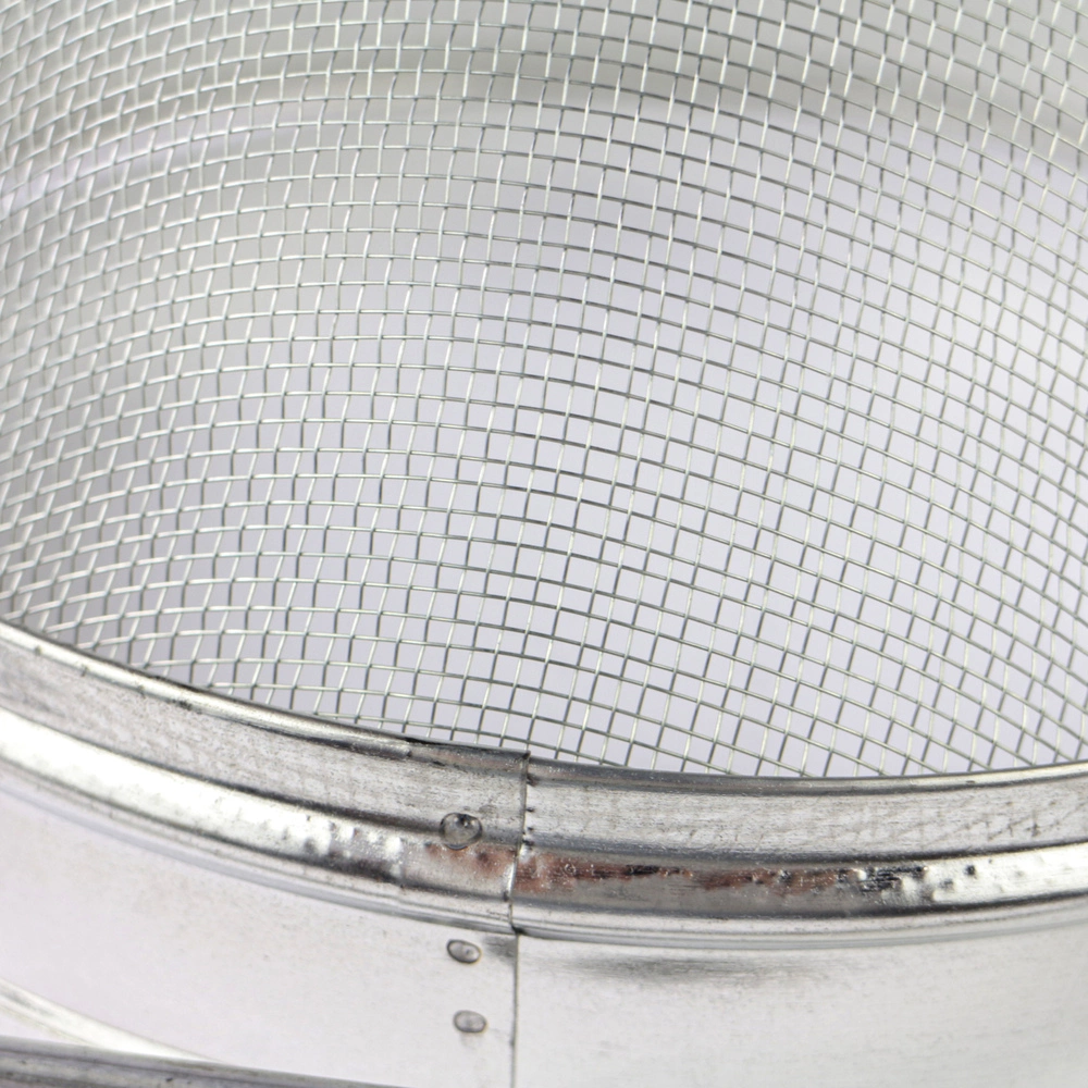 Фільтр бджолярський діаметром 20 см з двома сітками. Перша сітка фільтра з великими отворами використовується для грубого очищення меду від великих часток, а друга сітка з дрібними отворами дозволяє очистити мед від дрібних часточок. Для кристально чистого очищення меду від часточок необхідно фільтрувати мед спеціальним нейлоновим фільтром для тонкого очищення. Фільтр виготовляється з сітки сферичної форми (напівкруглої) або з прямої сітки. Сталь у виготовленні фільтрів також буває різна - нержавіюча або оцинкована. Нижня частина фільтра для меду має висувні ручки для установки фільтра на горловину будь-якої ємності діаметром більше 20 сантиметрів.