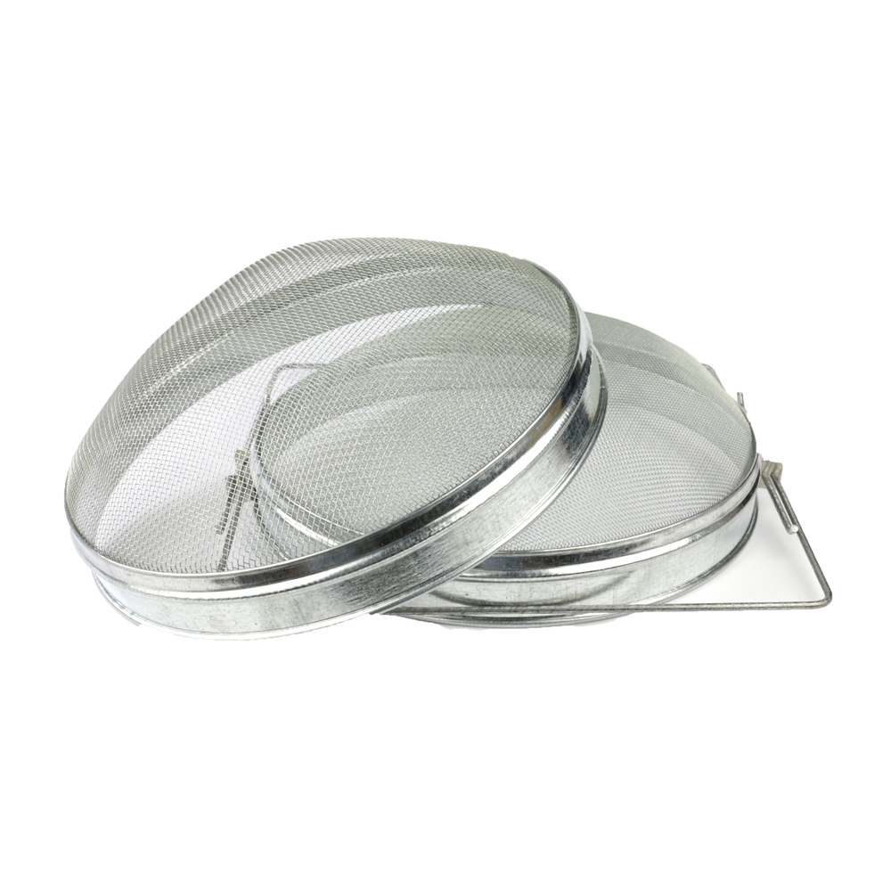 Фільтр бджолярський діаметром 30 см з двома сітками. Перша сітка фільтра з великими отворами використовується для грубого очищення меду від великих часток, а друга сітка з дрібними отворами дозволяє очистити мед від дрібних часточок. Для кристально чистого очищення меду від часточок необхідно фільтрувати мед спеціальним нейлоновим фільтром для тонкого очищення. Фільтр виготовляється з сітки сферичної форми (напівкруглої) або з прямої сітки. Сталь у виготовленні фільтрів також буває різна - нержавіюча або оцинкована. Нижня частина фільтра для меду має висувні ручки для установки фільтра на горловину будь-якої ємності діаметром більше 30 сантиметрів.