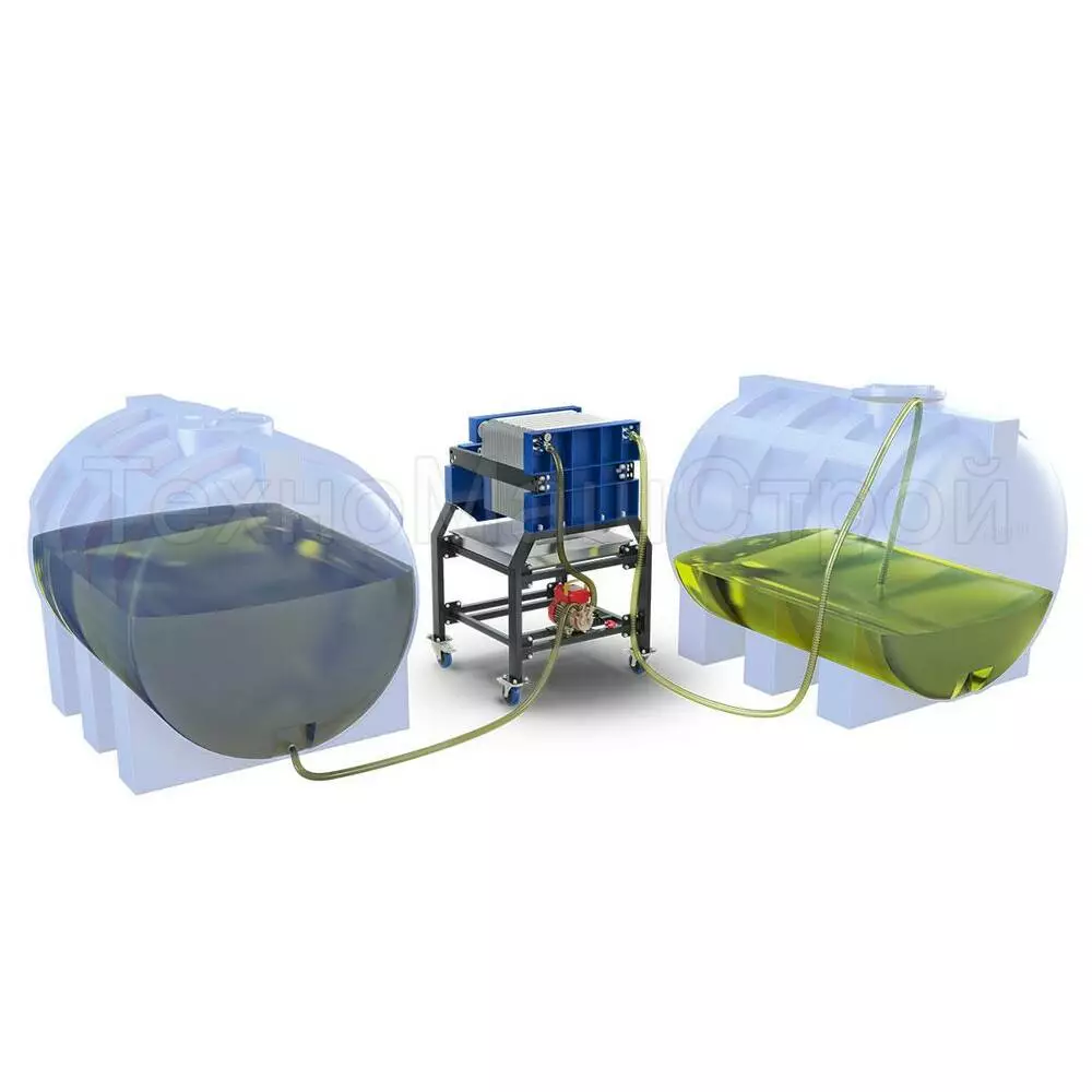Рослинна олія на фільтрацію подається насосним агрегатом, розташованим на станині маслофільтра.
