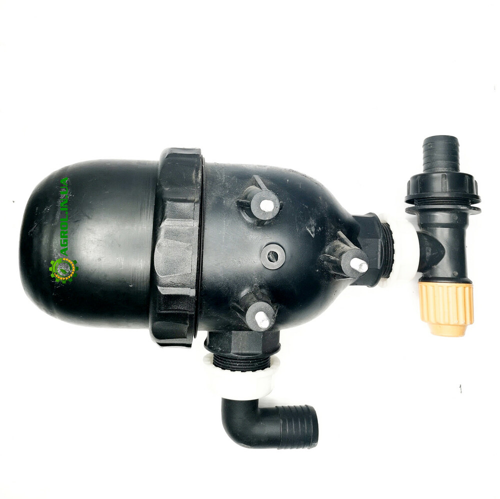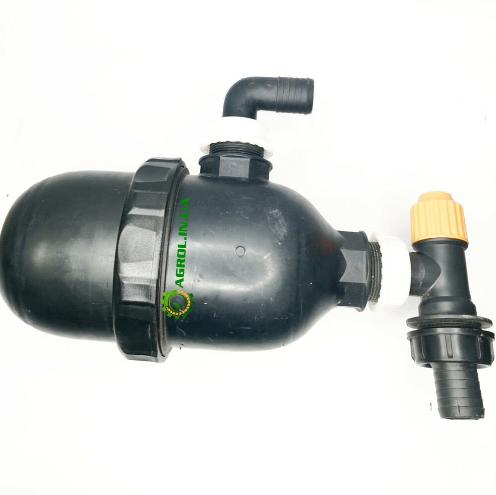 Данный фильтр имеет сито с нержавейки, а также кран для перекрытия подачи смеси. Это позволяет легко очищать фильтр, а также перекрыть подачу жидкости с бочки, в случае поломки насоса, колен или других узлов опрыскивателя. Производитель Польша.