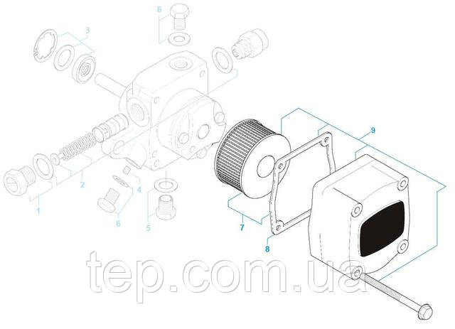 Фильтр, прокладка кришки та кришка до насосів Suntec AJ (991477). Для дизельних пальників.