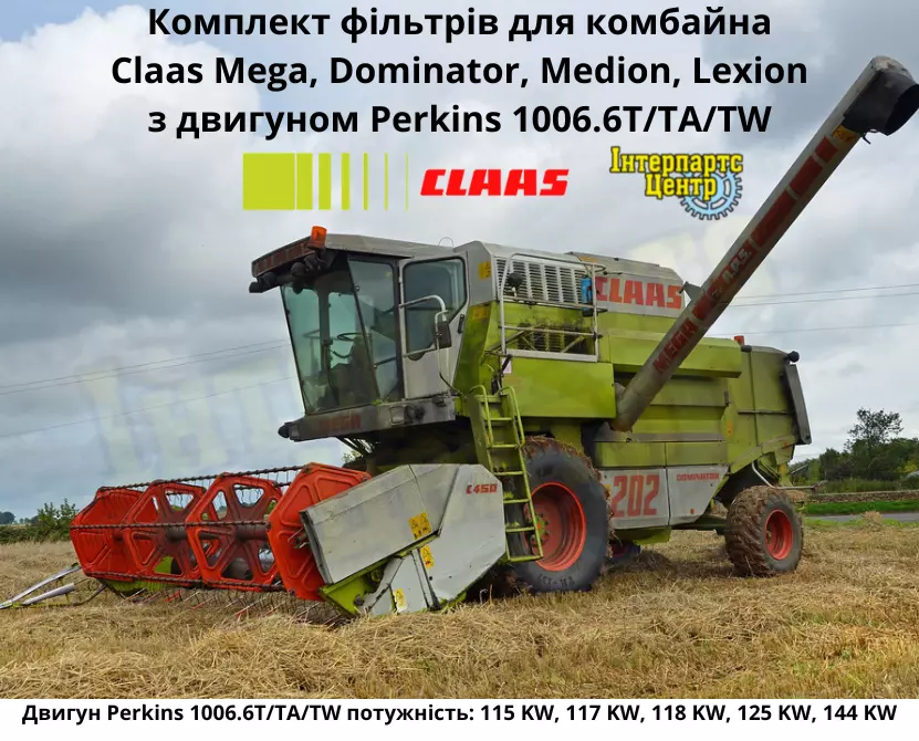 Фільтри для комбайна Claas Mega, Dominator, Medion, Lexion з двигуном Perkins 1006.6T/TA/TW