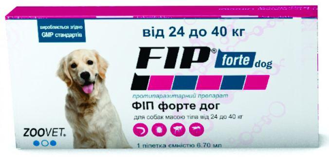FIP forte dog (ФІП форте дог) краплі від бліх, кліщів і комарів для собак 24 - 40 кг, Zoovet