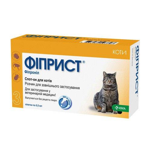 Фіприст Спот-он Краплі від бліх, кліщів і волосоїдів для котів упаковка №3 піпетки по 0.5 мл KRKA