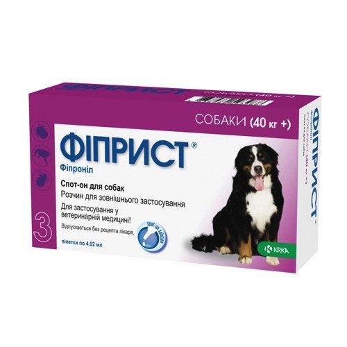 Фіприст Спот-он Краплі від бліх, кліщів і волосоїдів для собак понад 40 кг упаковка №3 піпетки по 4,02 мл KRKA
