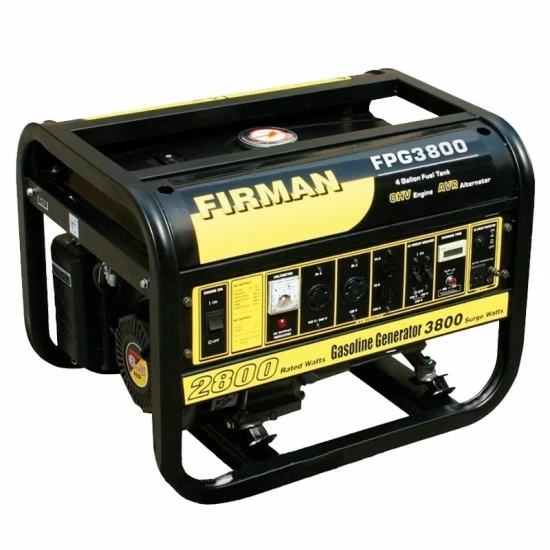Firman FPG 3800 Электрогенератор Однофазный бензиновый генератор Firman FPG 3800 - отличный выбор профессионального аппарата для решения проблем с мобильным аварийным источником питания Ваших электроприборов средней мощности. Несмотря на малый вес и размеры, он обладает мощным 4-х тактным бензиновым двигателем и увеличенным баком на 15 л. Кроме этого, электрогенератор может похвастаться усиленной конструкцией рамы, низким уровнем шума (69 дБ), системой легкого запуска (даже при минусовых температурах) и наличием ряда защит для предотвращения поломок или перегрева аппарата. Данные технические особенности и преимущества однофазной бензиновой электростанции Firman FPG 3800 сделали ее популярной среди домовладельцев, дачников, строительных бригад и коммунальщиков. Однофазный бензиновый генератор Фирман экономно расходует топливо (потребляет 0,55 л/кВт-ч), за счет чего его беспрерывная работа может длится до 12 часов (с условием полной заправки и нагрузки генератора). Особенности: Функция защиты от перегрузки двигателя аппарата Низкий уровень шума Малые размеры и вес Выходная однофазная розетка на 12В с заземлением Стабильная непрерывная работа на протяжении 12-ти часов Автоматическая остановка при пониженном уровне масла
