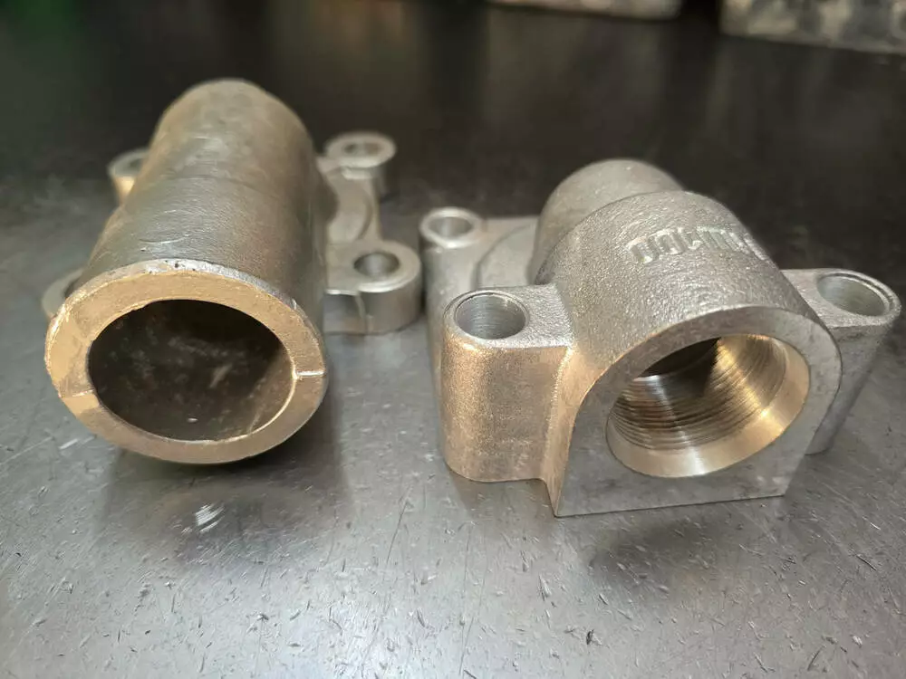 Фланець кутовий універсальний НС100-01 (без різі на фото зліва) з перших рук за найкращою ціною від постачальника гідравліки No1 в Україні