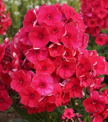 пурпурно-малиновими квітами діаметром 4 см, зібраними в пишні