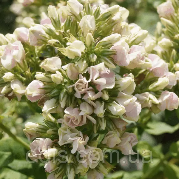 Винятковий сорт. Незвичайний за фактурою, переливами відтінків, пізнім і тривалим цвітінням. Квітки завиті, хвилясті, не відкриваються повністю. Цей флокс люди плутають часто з гортензією - дуже схоже: щільне, велике, округле суцвіття, пастельно-рожеве з молочним та салатовим.