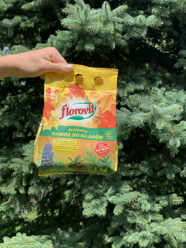 Якщо під час добрива «Флоровити» найближчим часом не передздриться дощ, хвойні рослини необхідно самостійно полити великою кількістю рідини.