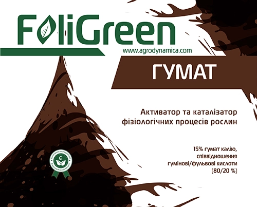 Склад: 15% гумат калію, співвідношення солей гумінових/фульвових кислот (80/20 %).
