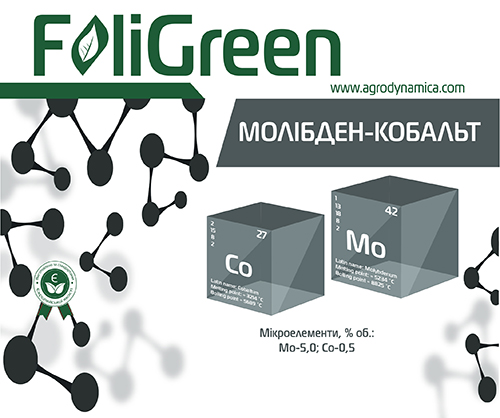 Композиція Мо та Со особливо ефективна при застосуванні на бобових, оскільки Молібден входить до складу ферменту нітрогеназа, який сприяє біологічній фіксації азоту атмосфери. Специфічна роль молібдену в процесі азотфіксації обумовлює покращення азотного живлення бобових культур, підвищує ефективність фосфорних та калійних добрив. При цьому поряд з ростом урожайно-