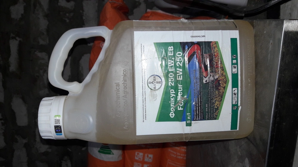 Фолікур - Високоефективний фунгіцид для інтенсивного вирощування ріпаку, зернових культур та винограду. Вміст діючої речовини: Тебуконазол, 250 г/л Препаративна форма: емульсія, олія у воді Ціна: за упаковку 5 л Фолікур® 250 EW, КВ є стандартом захисту за вирощування озимого ріпаку в багатьох країнах Європи завдяки добре вираженій рістрегулюючій дії та фунгіцидному ефекту. За обприскування озимого ріпаку в осінній період (3–5 листків у культури) припиняється активне наростання наземної маси, в той час як фотосинтез триває, що сприяє накопиченню пластичних речовин у кореневій частині, прискорює ріст довгого і добре розгалуженого коріння та поліпшує зимостійкість. Використання фунгіциду Фолікур® навесні забезпечує стійкість проти вилягання і краще формування бічних пагонів. Завдяки унікальній формуляції Фолікур® швидко проникає в рослину (за 1–2 години), тому ефективність гарантована авіть у разі можливої зливи після обприскування. Він діє як профілактично, так і після ураження хворобою, зберігаючи свою фективність упродовж декількох тижнів. Переваги препарата Широкий спектр біологічної активності. Профілактичне та лікувальне застосування. Добре виражений «стоп-ефект». Тривалий захист листя, стебла та колоса від основних хвороб. Добра змішуваність з іншими препаратами. Відсутність фітотоксичності. Сумісність Фолікур® можна змішувати з багатьма регуляторами росту, інсектицидами, іншими контактними і системними фунгіцидами. Перед приготуванням обочого розчину слід перевірити його на змішуваність! Зверніть увагу, що фізична сумісність продуктів у багатокомпонентному баковому розчині не завжди може підтверджуватись тестовим змішуванням! Тести на змішування та на сумісність не дають змоги перевірити наявність будьякого несприятливого фітотоксичного впливу на врожай або біологічну ефективність окремих компонентів у разі застосування в бакових сумішах! Техніка застосування Рекомендується дрібнокрапельне обприскування з нормою витрати робочої рідини 200–400 л/га для внесення польовими агрегатами залежно від його типу: наприклад, придатні плоскоструменеві інжекторні форсунки, тиск рідини — 2,5–5,0 кг/см2 , швидкість руху агрегату — 6–7 км/год. https://agroplant.com.ua/uk/folikur