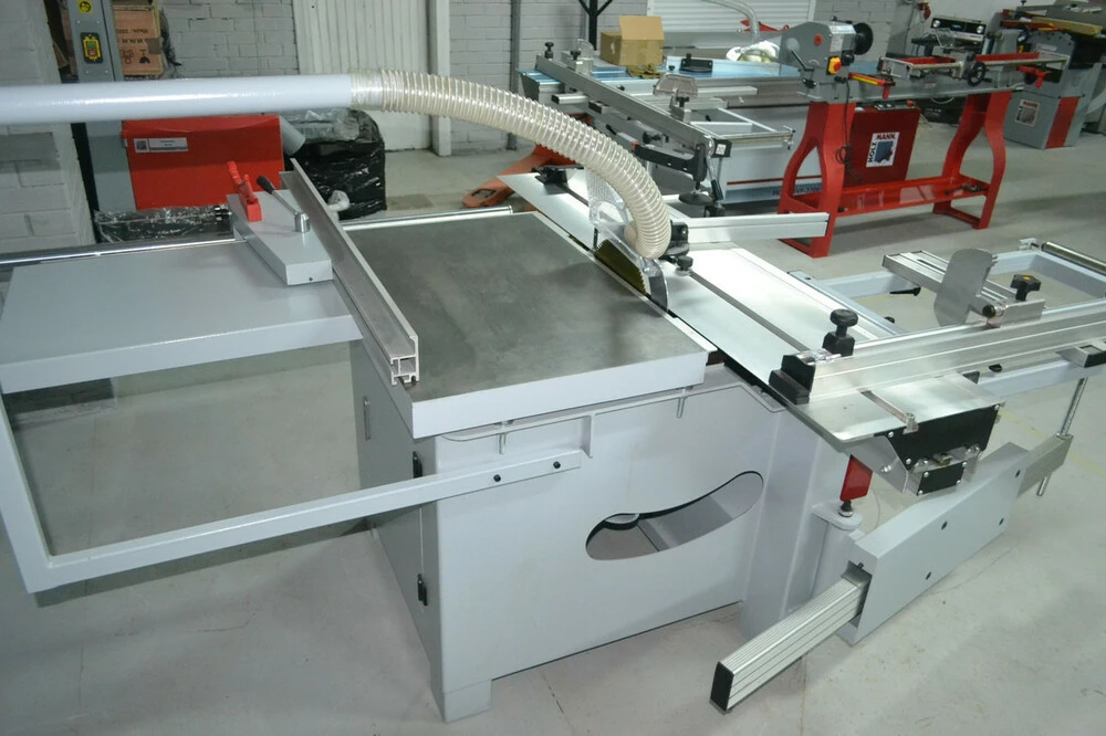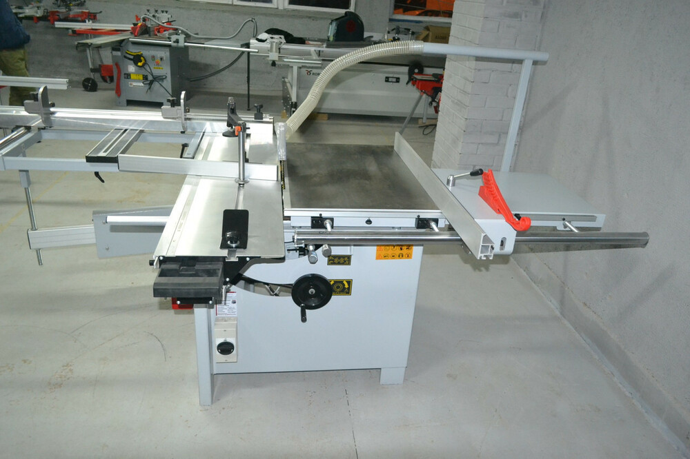 Станок прошел европейскую сертификацию СЕ Идеально подходит для обработки больших заготовок, а также резания больших, тяжёлых панелей Подрезной пильный диск с собственным двигателем в стандартной комплектации Пульт управления с фронтальной стороны станка Легкая и точная регулировка высоты и угла наклона пильного диска с помощью маховика Аналоговый индикатор угла наклона пильного узла Две скорости резания основного пильного диска входят в стандартную комплектацию Качественный и устойчивый корпус станка Удобство работы за счет расширителя и удлинителя стола Алюминиевая роликовая каретка со стальными закаленными направляющими Большой собственный вес позволяет выполнять прецизионную обработку тяжелых заготовок Устойчивый параллельный упор с точной настройкой Прочный выдвижной телескопический упор на разметочном столе с 2 откидными упорами Макс. ширина резания от параллельного упора 1150 мм КОНСТРУКТИВНЫЕ ОСОБЕННОСТИ: