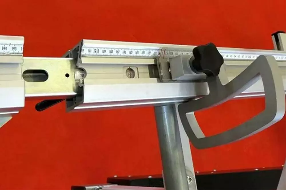 Два цифровых индикатора размеров на левой поперечной линейке (в комплекте двойной откидной упор DDF и одинарный на телескопической линейке)