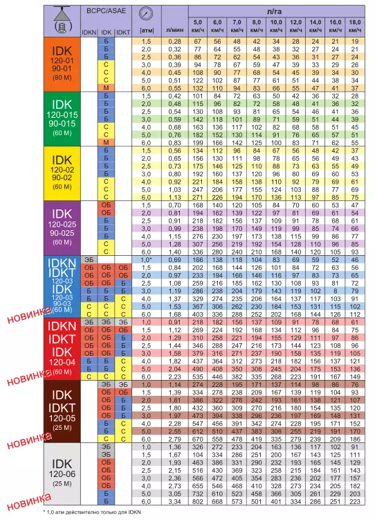 При давлении выше 3 бар уступают известным антисносовым распылителям ID и IDN по причине более мелкого спектра капель