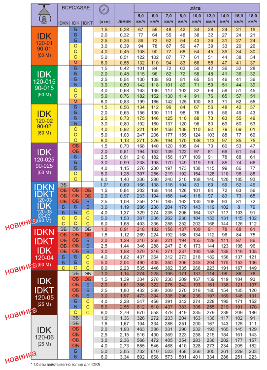При давлении выше 3 бар уступают известным антисносовым распылителям ID и IDN по причине более мелкого спектра капель