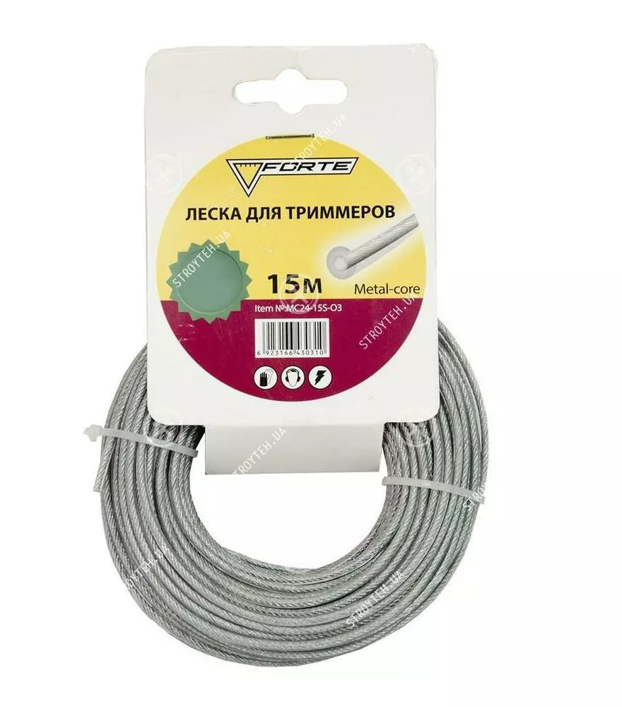 Forte 3 мм х 15 м Леска для мотокос металл сердечник Триммерная леска армированная металлом, предназначена для профессионального использования в сложных условиях работы. Сердечник усиливает прочность и увеличивает срок ее службы. Изделие отличается высокой стойкостью к разрыву, за счет чего прибор будет работать в течении долгого времени без необходимости частой замены лески.