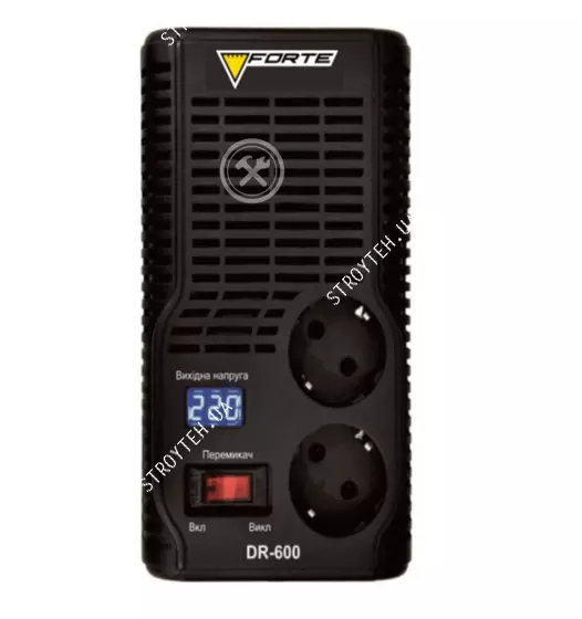 Forte DR-600 Стабилизатор напряжения Стабилизатор напряжения Forte DR-600 надежный бытовой аппарат, который обеспечивает стабильное электропитание оборудования в условиях продолжительного по времени заниженного или завышенного напряжения электросети. Стабилизатор оснащен защитой от перегрева, короткого замыкания и скачков напряжения и функцией задержки включения после отключения, что защитит двигатели Ваших бытовых электроприборов от перегрузки. Данное свойство делает стабилизатор Forte DR-600 востребованным и практичным в быту. Размеры, вес и способ установки аппарата не составят проблем с выбором места для его установки или хранения.