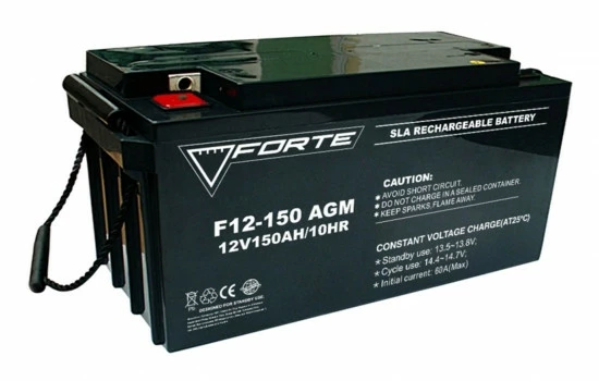 Forte F12-150AGM Аккумулятор Области применения: Автономные и аварийные энергетические системы (ИБП, инверторы, UPSы) Бытовые приборы Телекоммуникационное оборудование Фотоэлектрическое оборудование Солнечные элементы (в составе систем солнечных батарей) Ветровые элементы (в составе ветроэнергетических систем) Инвалидные транспортные средства Медицинское и косметическое оборудование Другие области, требующие работы в условиях глубокого разряда Преимущества аккумуляторных батарей: Отлично справляются с мощными нагрузками Достаточна высокая экологичность Малый саморазряд Низкие требования по обслуживанию - не требуется доливки электролита