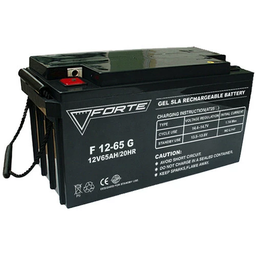 Forte F12-65G Аккумулятор гелевый Сочетание улучшенных характеристик (по сравнению с свинцово-кислотными батареями) и относительно невысокой цены, сделало аккумулятор AGM Forte F12-65 самым распространённым видом, применяемым во всевозможных источниках бесперебойного питания. В UPS, использующихся для завершения работы при отключении электроэнергии в сети, аккумуляторы AGM работают в буферном режиме, cохраняя свою ёмкость на протяжении от нескольких,- до десятка лет. Но обязательным условием долговременной работы является отсутствие циклирования заряд разряд. Особенности: Владеют малым током саморазряда Сохраняют высокий ток в цепи, независимо от степени разряда и отлично переносят глубокую разрядку Отлично справляются с мощными нагрузками Низкие требования по обслуживанию - не требуется доливки электролита