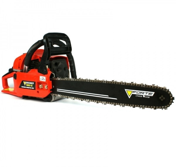 Forte FGS 52-52 Бензопила цепная Защита: От обратного удара (моментальная остановка цепи) Защита рук Безопасный выключатель Особенности: Легкий старт Повышенный ресурс двигателя Хромированное покрытие стенок цилиндра Поршень имеет два кольца Эффективная антивибрационная система Регулировка подачи масла Высококачественный противоударный пластик