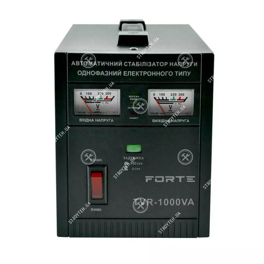 Forte TVR-1000VA Стабилизатор напряжения Стабилизатор напряжения FORTE TVR-1000VA компактное устройство, которое защитит бытовые и промышленные электроприборы от скачков напряжения в сети. Устройство имеет надёжную систему защиты IP 20, благодаря которой может прослужить без сбоев ни один год. Имеется контроль нагрева трансформатора, термозащита и пассивное охлаждение. Использовать стабилизатор можно как дома так и на производстве. Температура воздуха в помещении, в котором находится аппарат, не имеет значения. Он может работать как в жарких, так и в холодных условиях. Крепкий металлический корпус обеспечивает надёжную защиту от повреждений. Максимальная нагрузка на стабилизатор 1 кВА. Преимущества: превосходная система защиты от перегрузки, короткого замыкания и скачков напряжения, индикация входного напряжения производится при помощи аналогового вольтметра, корпус крепки, сделанный из металла, есть система, препятствующая залипанию контактов, компактный размер аппарат поместится в любом помещении и его можно носить с собой.