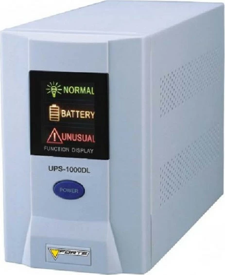 Forte UPS-1000DL Источник бесперебойного питания Особенности: Бесшумная работа Существенный ресурс работы Заряд аккумуляторов всегда 100% Работает от аккумуляторной батареи (поставляется отдельно) ИБП FORTE UPS-1000DL применяется для аварийного питания: Домашнего электрооборудования Пожарных систем Охранных систем Освещения Компьютерных и мобильных устройств Источник бесперебойного питания FORTE UPS-1000DL имеет защиту от: Повышенного напряжения Пониженного напряжения Низкого заряда аккумулятора Короткого замыкания Перегрузки, 120%-150%