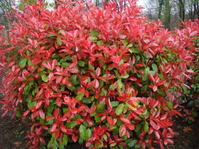 У фотінії зелені щільні листки, в момент розпускання вони мають оранжево-червоний відтінок,. Для швидшого загущення куща рослину необхідно стригти до 3 разів на рік, а ще це забезпечить яскравий, барвистий колір протягом усього сезону . Часто з фотінії також формують живу огорожу.
