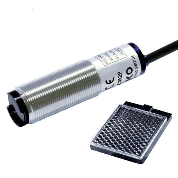 Промышленный оптический, отражающий датчик (датчик + отражатель) для обнаружения любых непрозрачных объектов.