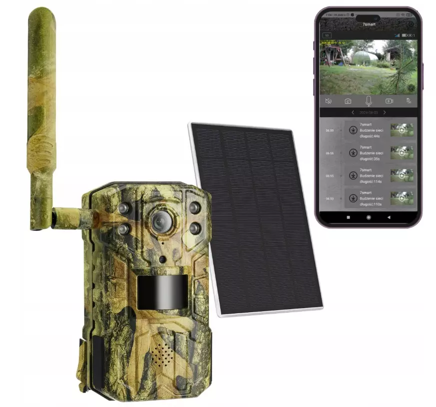 Фотопастка 4G із сонячною панеллю призначена для автоматичної зйомки зображень або відео при виявленні руху у денний та нічний час. Вона часто використовується для спостереження за дикою природою, полюванням, охороною територій або моніторингом, забезпечуючи автономну роботу завдяки вбудованій сонячній панелі, яка заряджає батареї камери. Передача даних здійснюється за допомогою SIM-карти (до комплекту не входить)