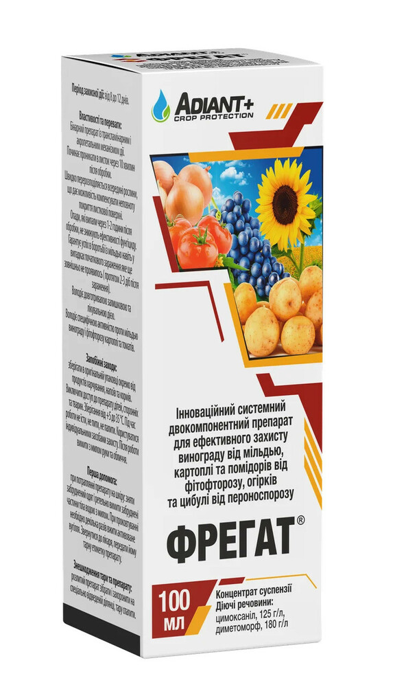 Пропонуємо звернути увагу на фунгіцид «Фрегат»! Даний засіб призначений для захисту різних культур від фітофторозу, пероноспорозу та мілдью. Відрізняється високою ефективністю та простотою використання.