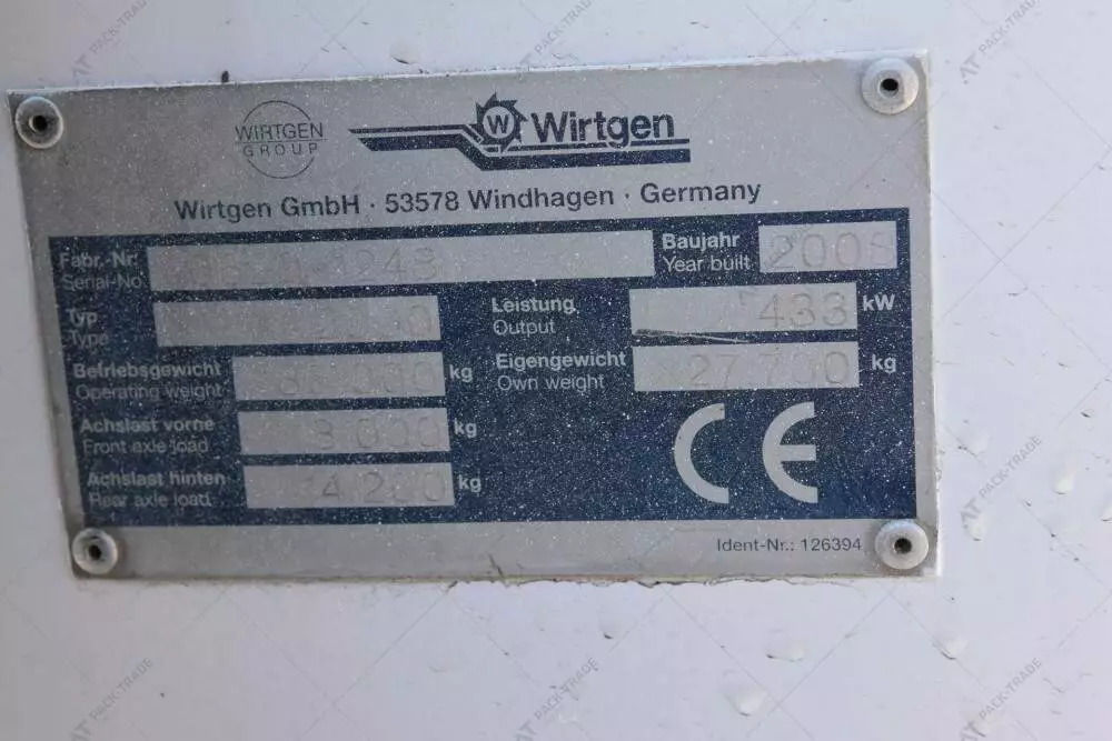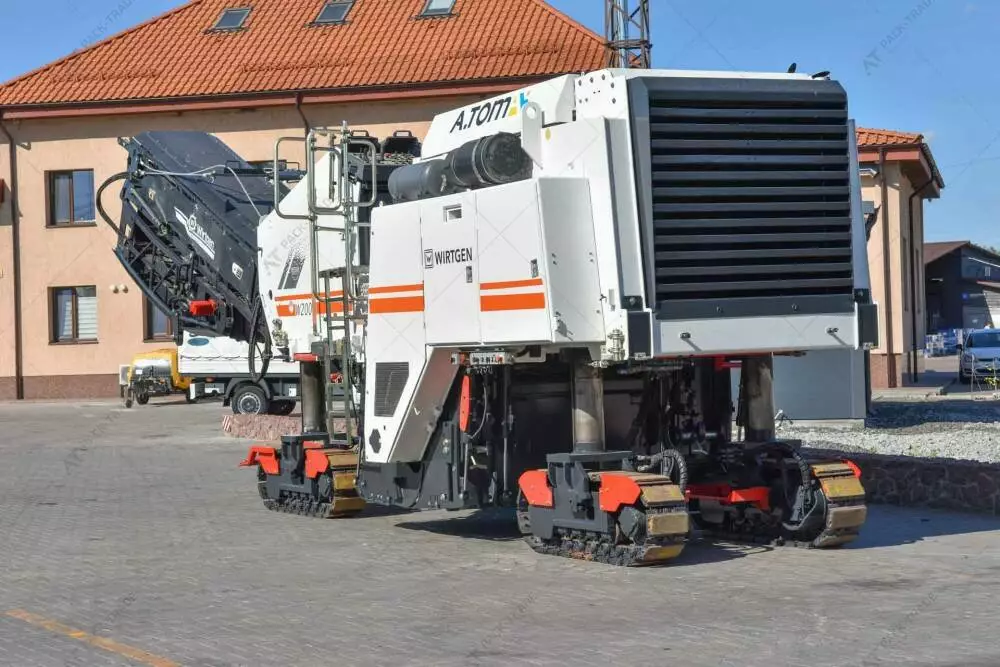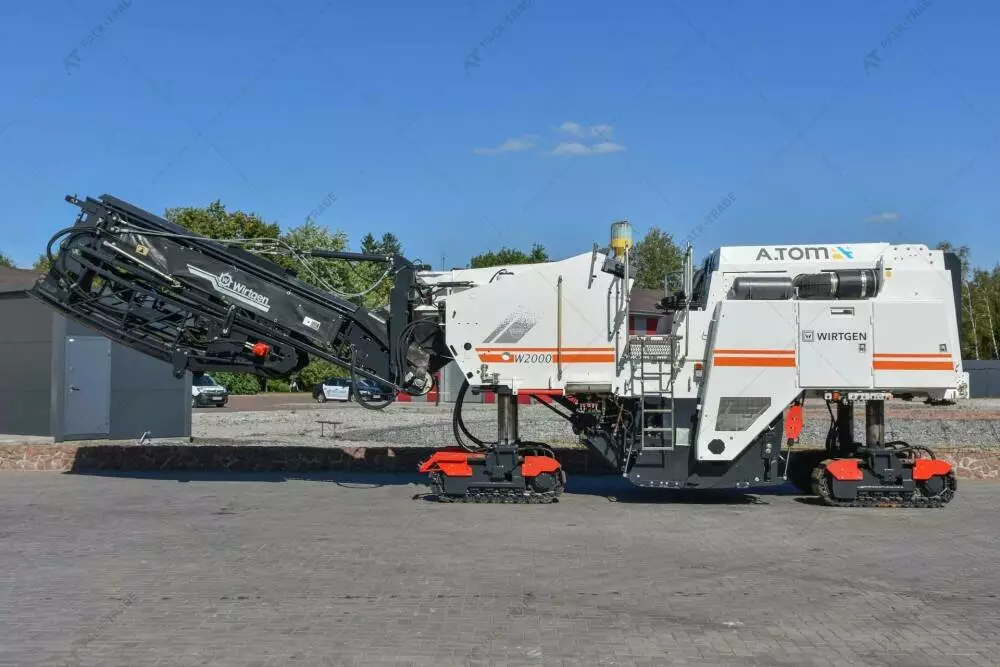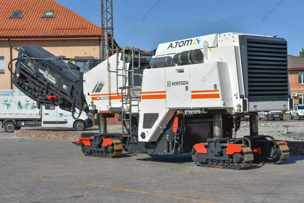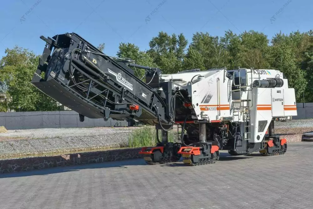 Дорожня фреза б/в Wirtgen W 2000 2008 р/в, з напрацюванням 6196 м/г. Потужність двигуна – 433 кВт. Вага – 30 000 кг. Ширина фрезерування – 2 м. Глибина фрезерування – 0,32 м. Гідравлічно складаний передній конвеєр.