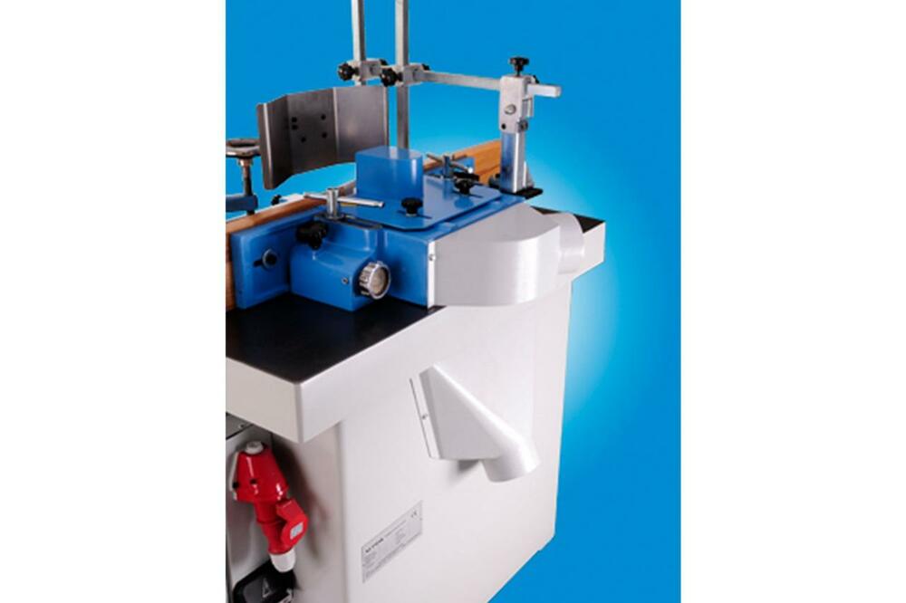 Станок имеет массивный чугунный рабочий стол со шлифованной поверхностью, не наклоняемый фрезерный шпиндель, защитный кожух для профилирования, три скорости вращения шпинделя, подвижную каретку, а также электромеханическую тормозную систему.