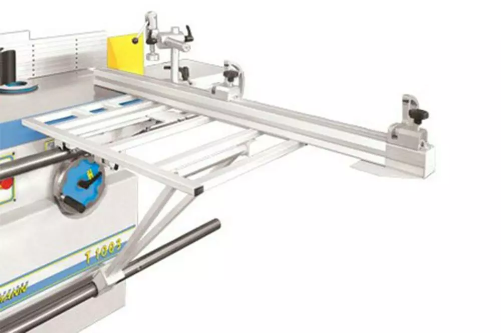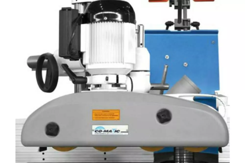 Возможность реверсивного вращения шпинделя при операции шипонарезании позволяет получать более высокую чистоту обработки. Подвижная каретка из чугуна с телескопической опорной линейкой и двумя эксцентриковыми прижимами для заготовки установлена на 2-ух круглых направляющих, которые крепятся к корпусу станка.