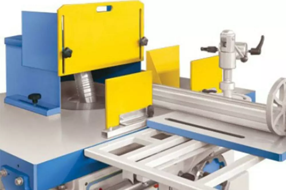 При профилировании возможно устанавливать фрезы Ø 275 мм, а при шипонарезании Ø 400 мм. Комплект для шипонарезки состоит из кожуха Ø 400 мм, специального стола, установленного на каретку и поворотной линейки с эксцентриковым прижимом.
