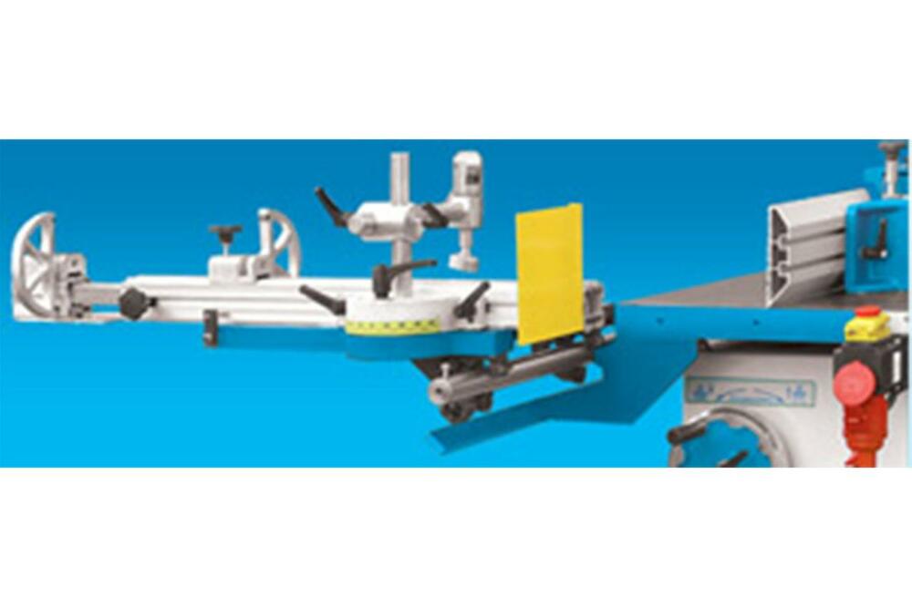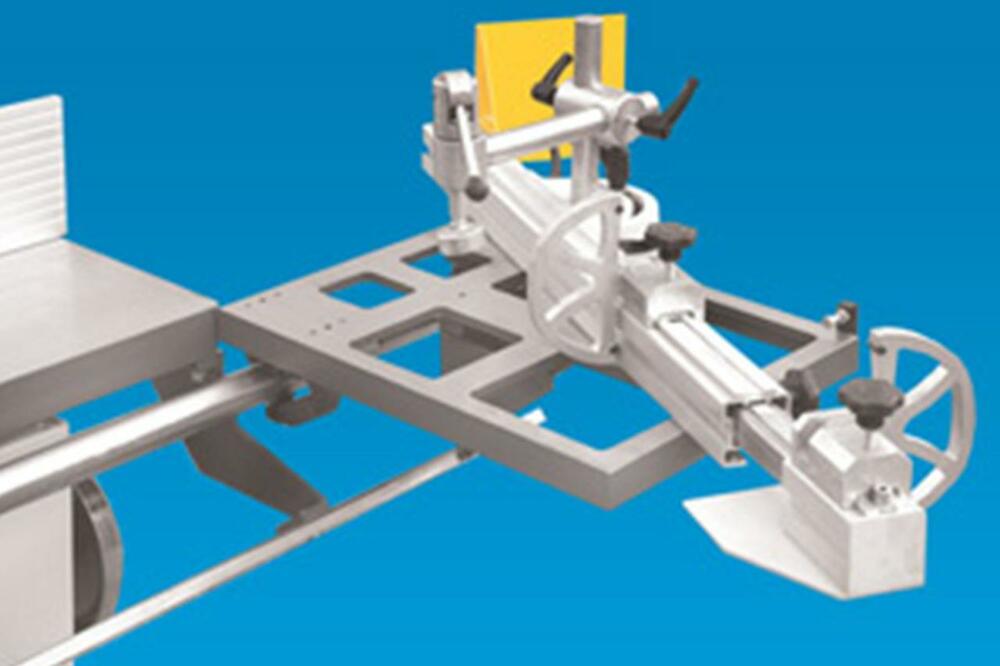 Подвижная каретка из чугуна с телескопической опорной линейкой и двумя эксцентриковыми прижимами для заготовки установлена на 2-ух круглых направляющих, которые крепятся к корпусу станка.