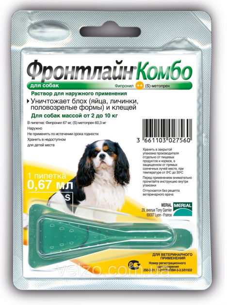 Frontline Combo (Фронтлайн Комбо) краплі від бліх та кліщів для собак вагою 2 - 10 кг
