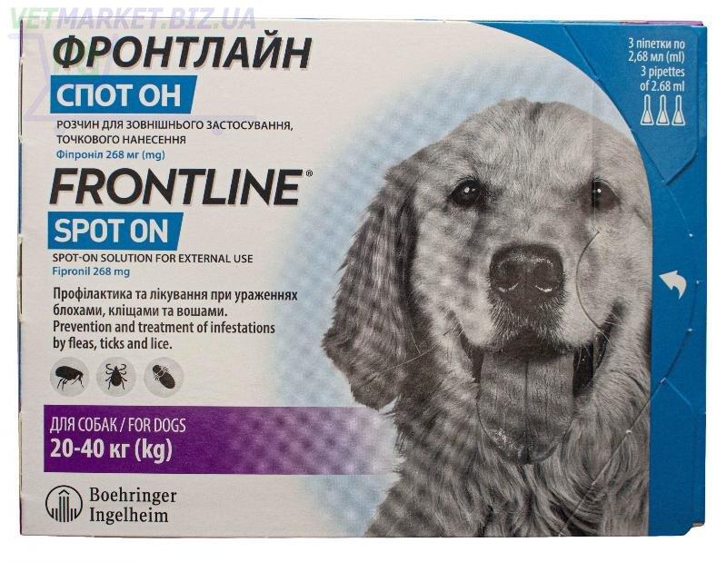 Frontline (Фронтлайн) Спот-Он від бліх і кліщів для собак вагою від 20 до 40 кг