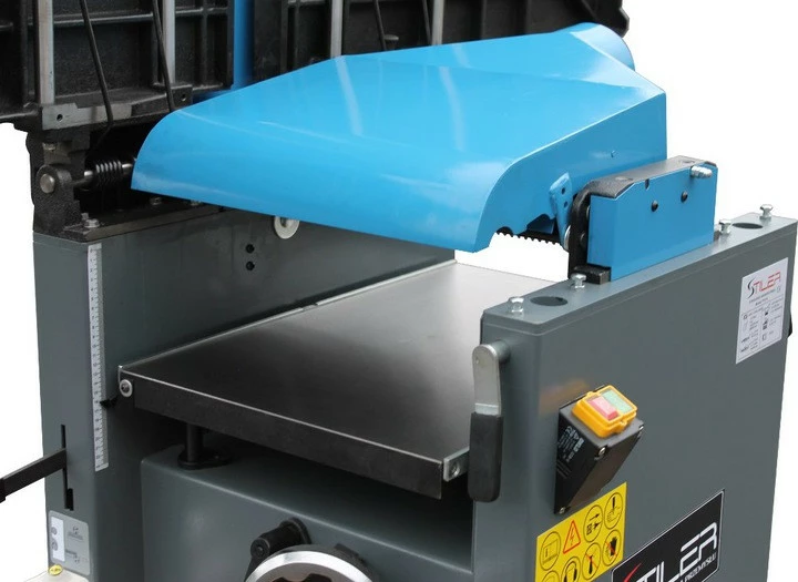 Робота столів і захисного кожуха товщини без використання інструментів означає, що машину можна перетворити з стругального верстата на товщувальну машину всього за кілька секунд.